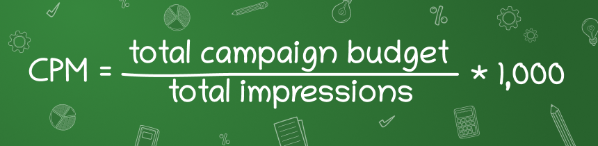 على سبيل المثال، تكلفة حملتك هي $500 (أي ميزانيتك التي تم إنفاقها)، وإعلانك الذي تلقيته 100,000 ظهور. كل ما عليك فعله هو اتباع المعادلة: 500 / 100,000 × 1,000 = 5. وباستخدام الصيغة، وجدنا أن CPM سيكون $5.