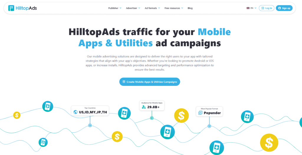 Inscreva-se no HilltopAds - a principal rede de publicidade móvel.